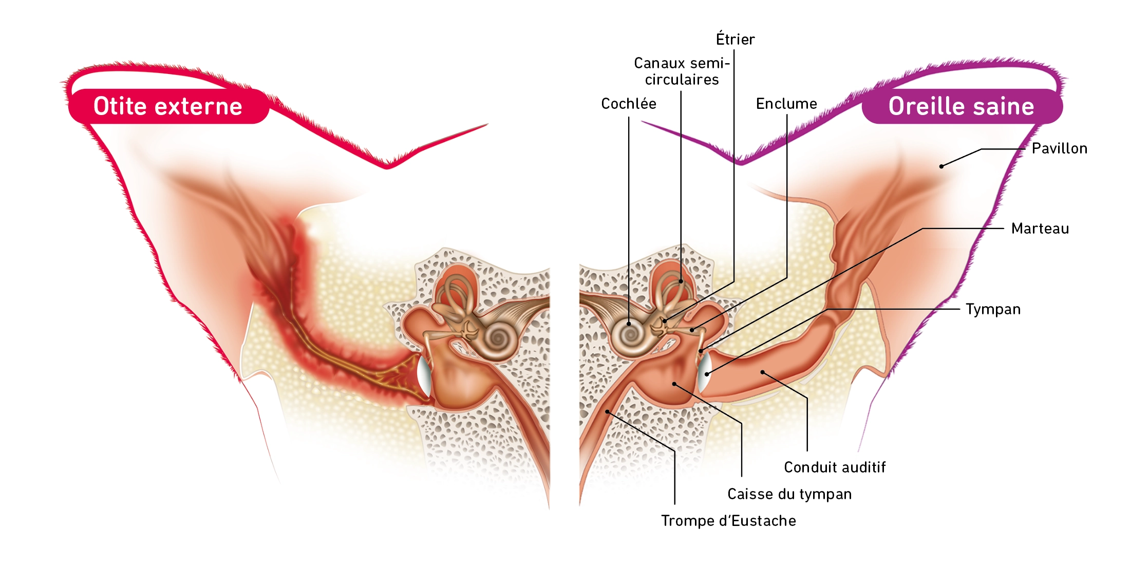 Les otites chez le chien représentent une cause fréquente de consultation vétérinaire. Une otite est une inflammation ou une infection de l’oreille, dont l’origine peut être multiple. Tout comme chez l’humain, il s’agit d’une affection très douloureuse pour nos compagnons à quatre pattes, pouvant fortement altérer leur bien-être au quotidien. Il est donc essentiel de savoir reconnaître les premiers signes d’une inflammation de l’oreille, également appelée otite dans le jargon médical, afin d’intervenir rapidement.